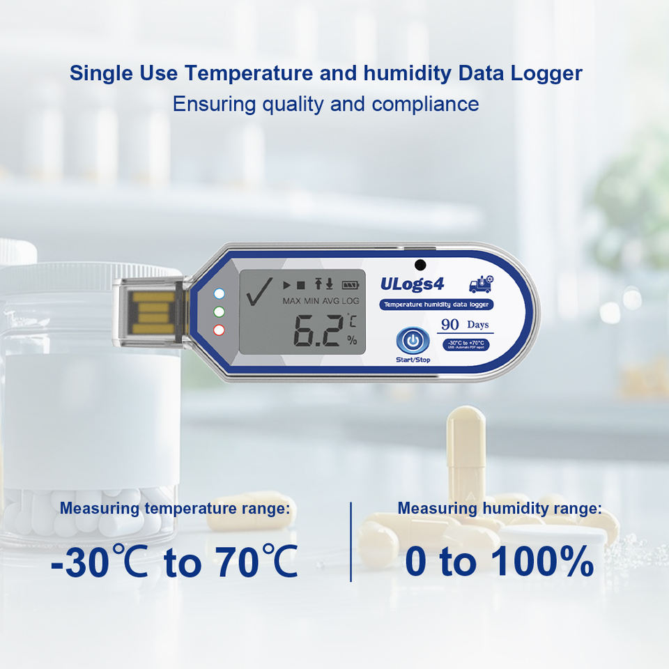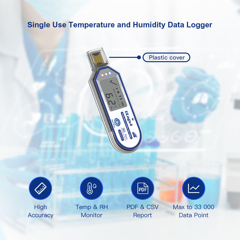เครื่องบันทึกข้อมูลอุณหภูมิและความชื้นแบบใช้ครั้งเดียว90วันสำหรับอุตสาหกรรมยา