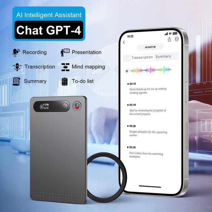 Grabadora de voz Smart Note AI ChatGpt4 Transcribe y resume el control de aplicaciones inalámbricas potenciadas y la grabación de audio de transmisión de datos