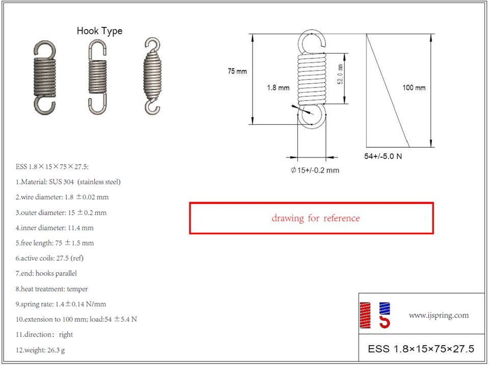 Resorte de tensión de acero inoxidable