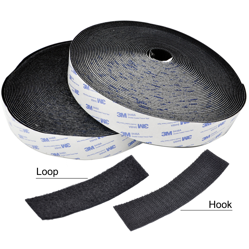 Ağır siyah kanca-döngü bant rulo yüksek yapıştırıcı kuvvet yumuşak naylon/Polyester çevre dostu tıbbi için özel baskılı Logo