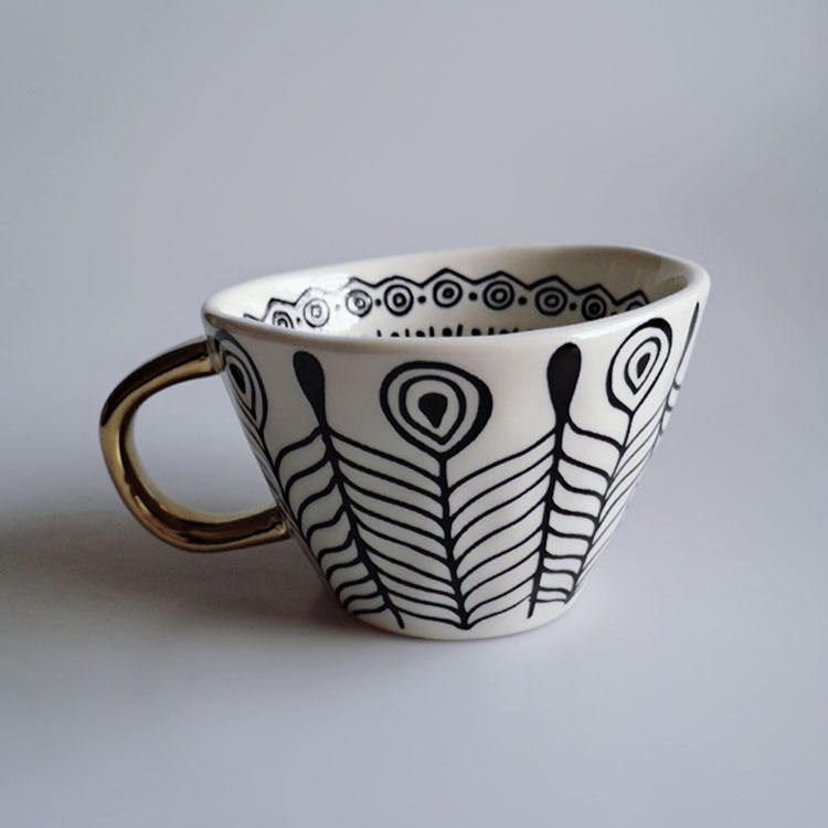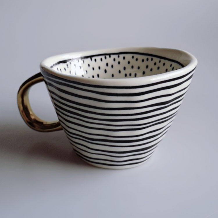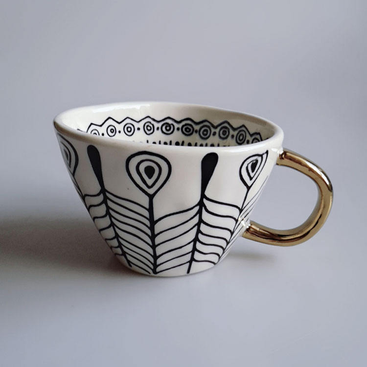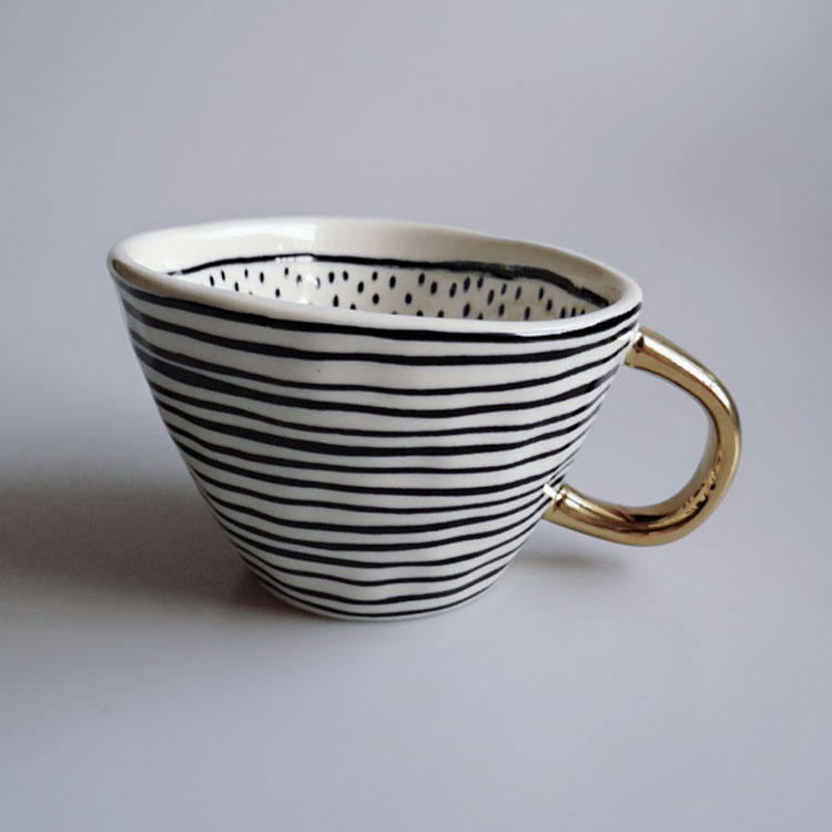 Forma triangular dentro de china taza de café de cerámica con mango de oro Y0230