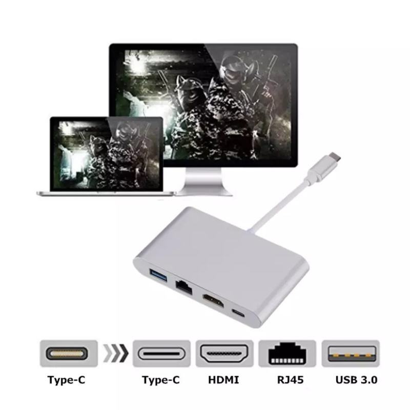 Adaptador USB C Multipuerto 4 en 1 Hub USB C con 4K HDTV RJ45 USB 3,0 Tipo C PD Cargador para Macook Pro Air iPhone