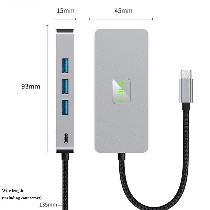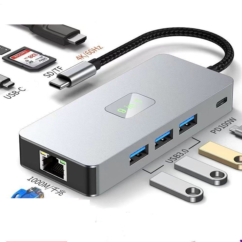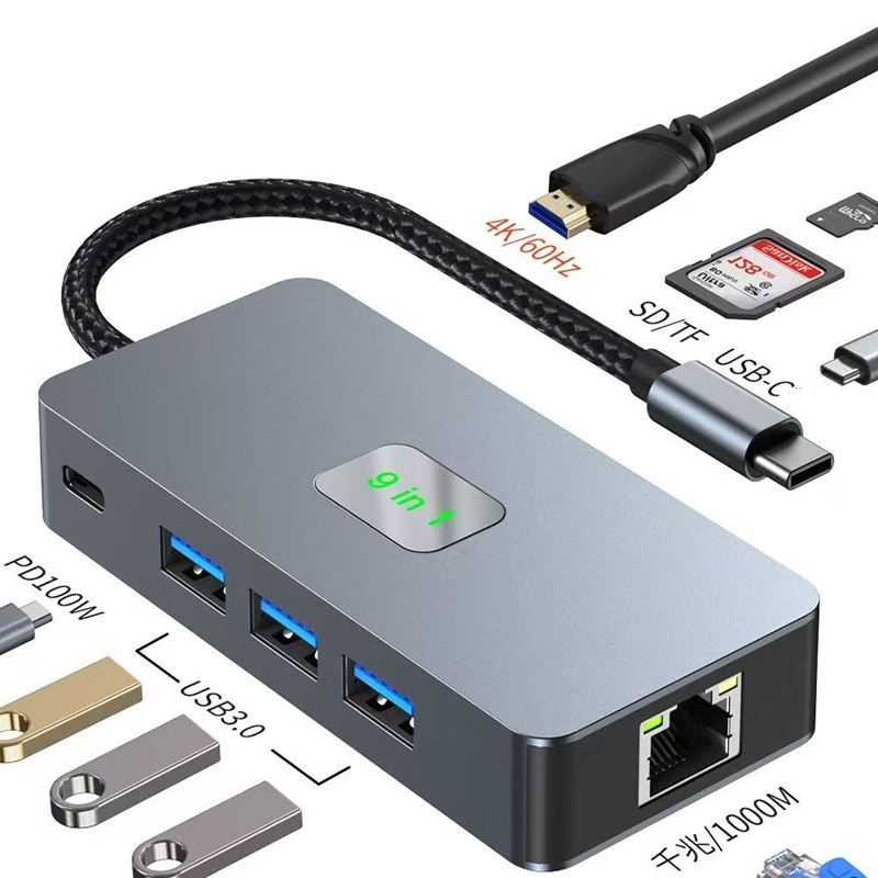 ชื่อผลิตภัณฑ์:TYPE-C เป็น HDMI + USB3.0 * 3 + RJ45(1000เมตร) + PD + SD + TF + USB-C ข้อมูล