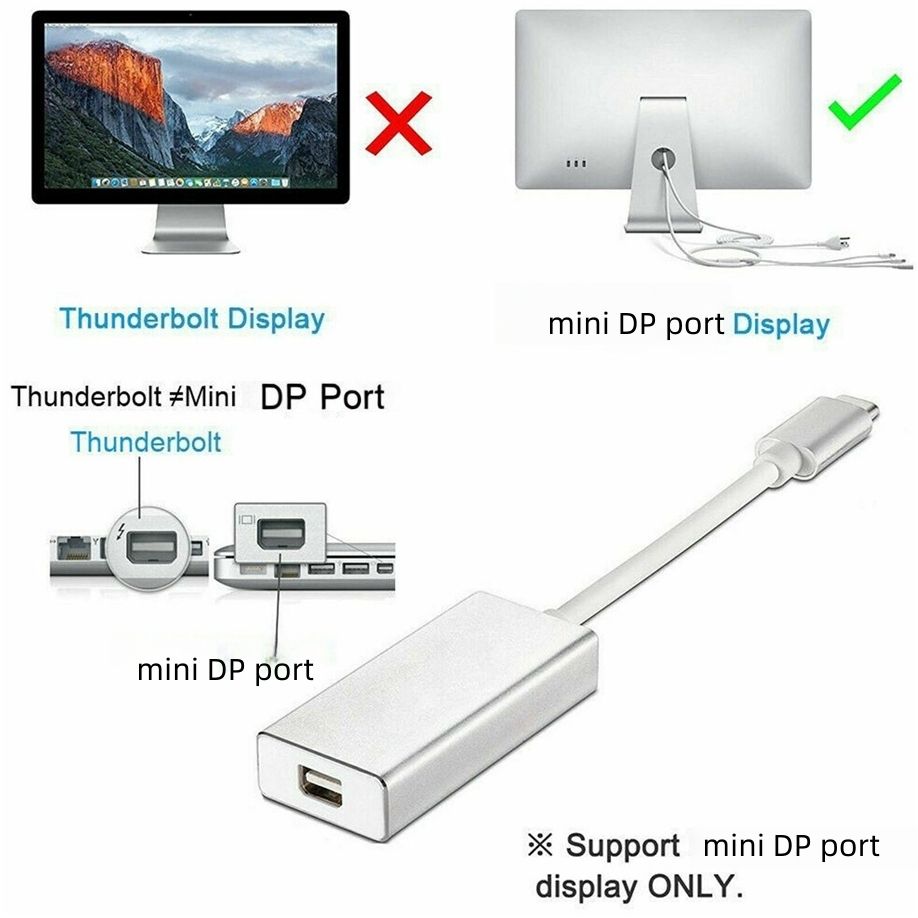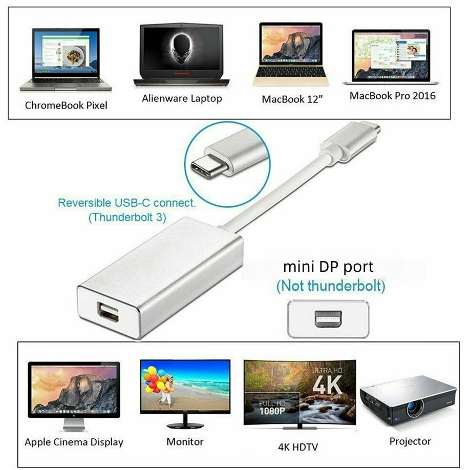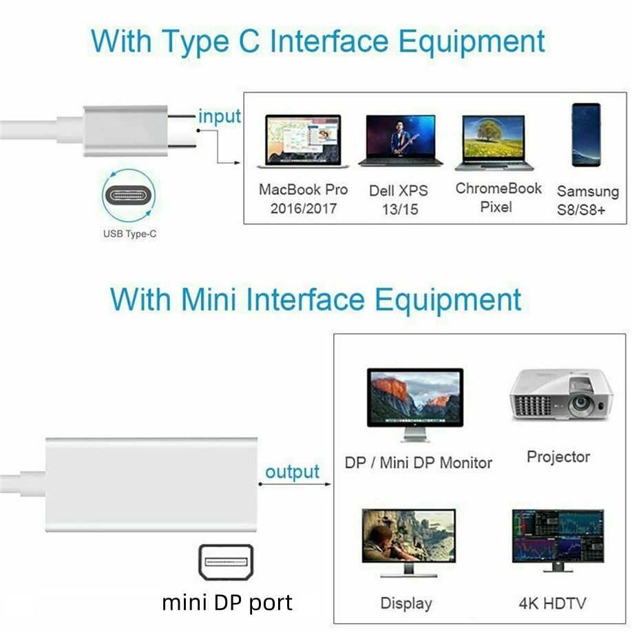 Cable adaptador de conversión para MacBook Pro Air, convertidor de vídeo USB 3,1 tipo C a Mini DP 4K, Puerto DP a Mini pantalla DP