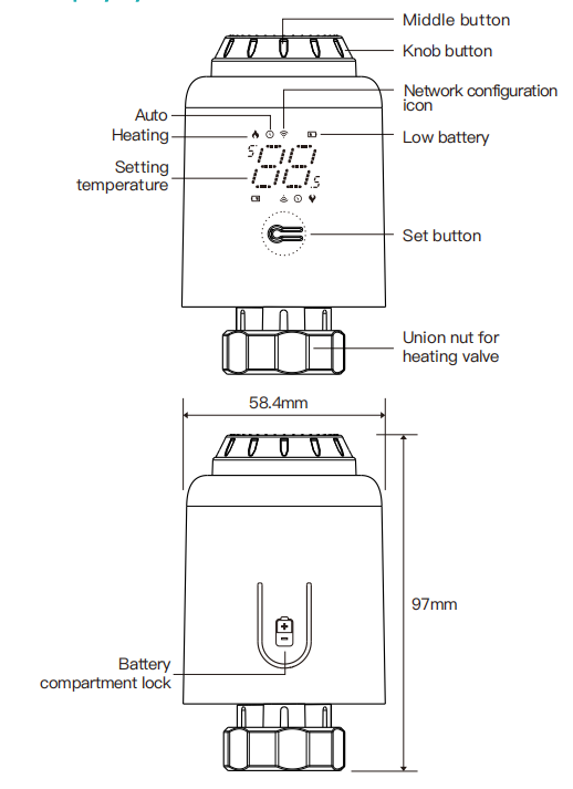 Pantalla LED inteligente Zigbee programable semanal de potencia ultrabaja, válvula termostática para radiador, pantalla LED TRV601