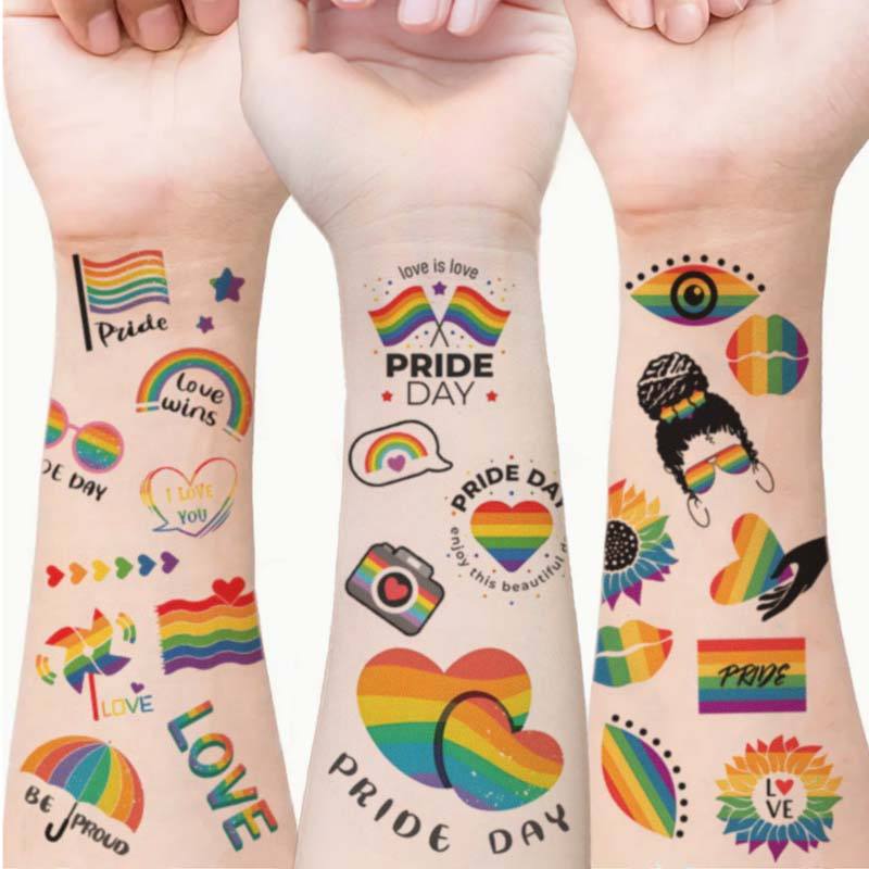 WE06 Día del Orgullo amor homosexual tatuaje temporal colorido tatuaje Facial pegatina Arco Iris pegatina para celebración de fiesta Gay