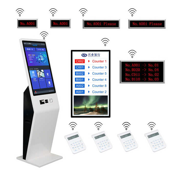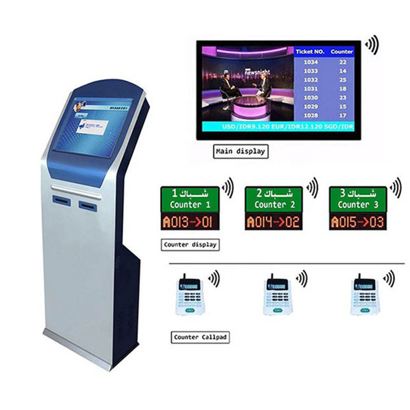 Sistema de gestión de colas bancarias Wavetec con pantalla LCD LED de número de espera, lector de código de barras con función SDK opcional