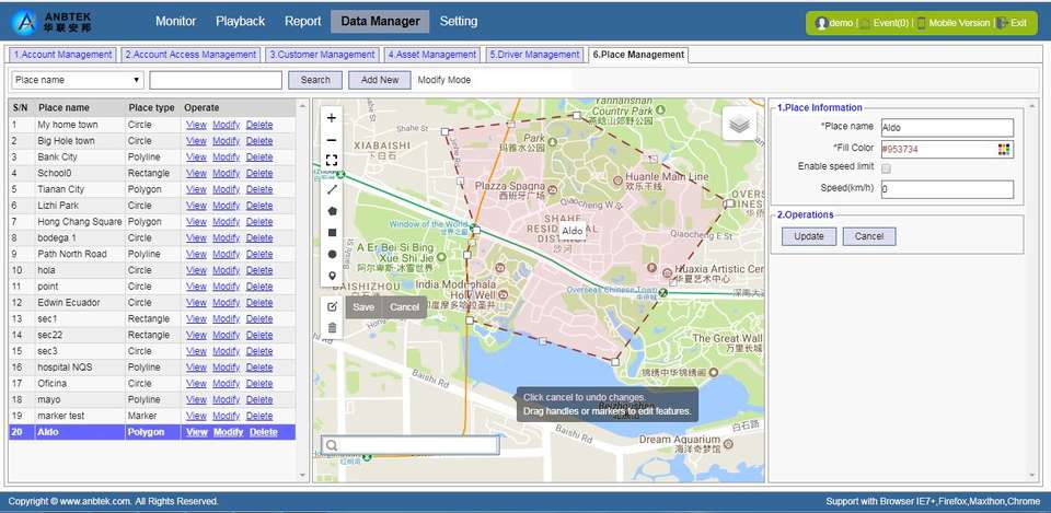 פונקציות:מעקב, השמעה, פקודה, דו "ח, ניהול נתונים