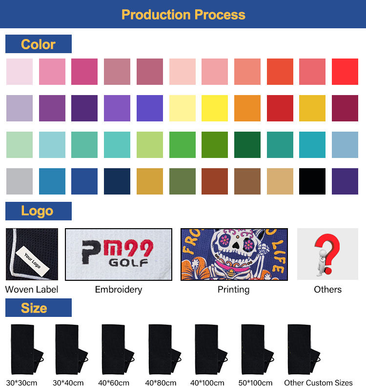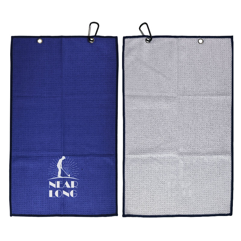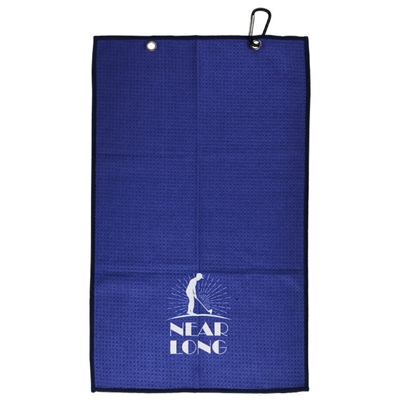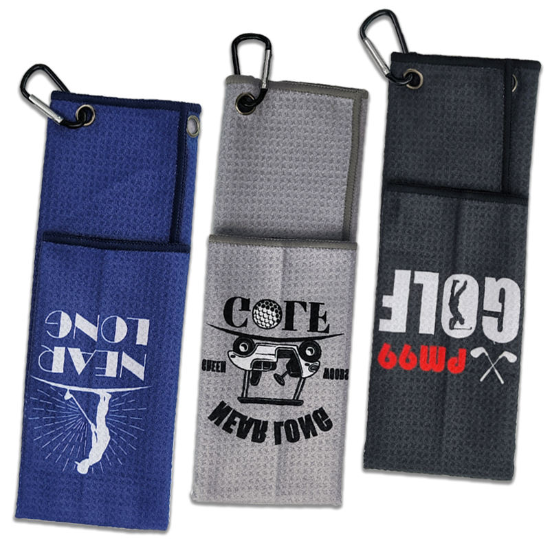 Toalla de limpieza de golf de microfibra con gofres impresos y logotipo personalizado al por mayor, toalla de golf de microfibra de secado rápido con características recicladas