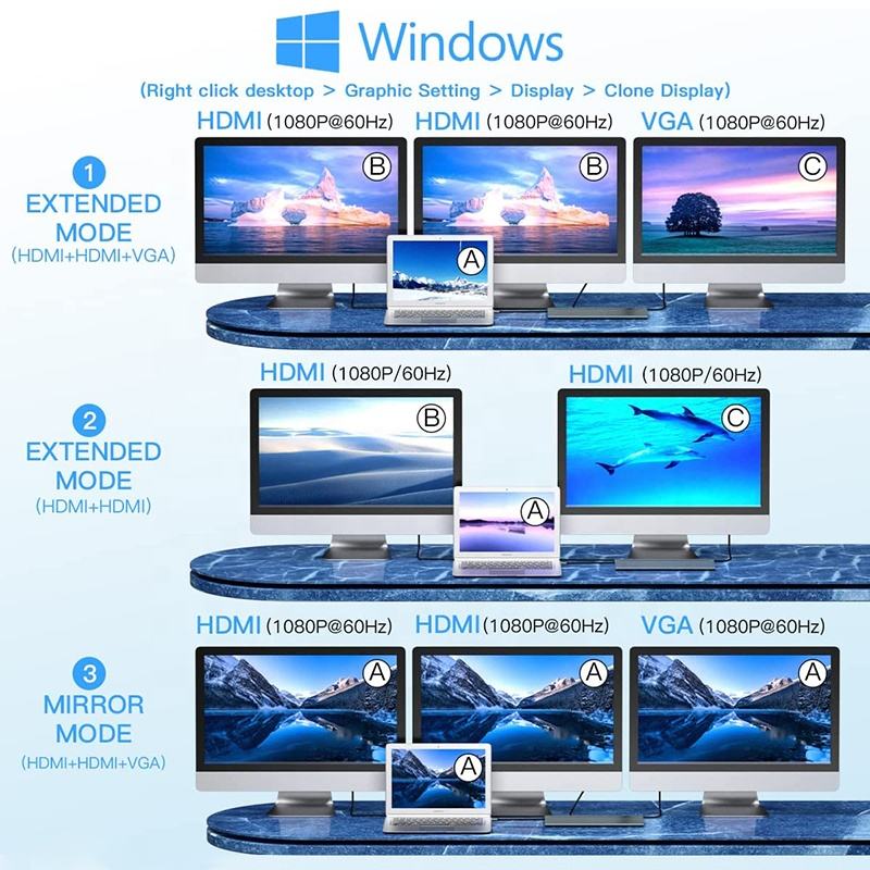 3xUSB+2xHDMI+VGA+RJ45+3.5MM Audio+SD/TF Card Reader+2xUSB C