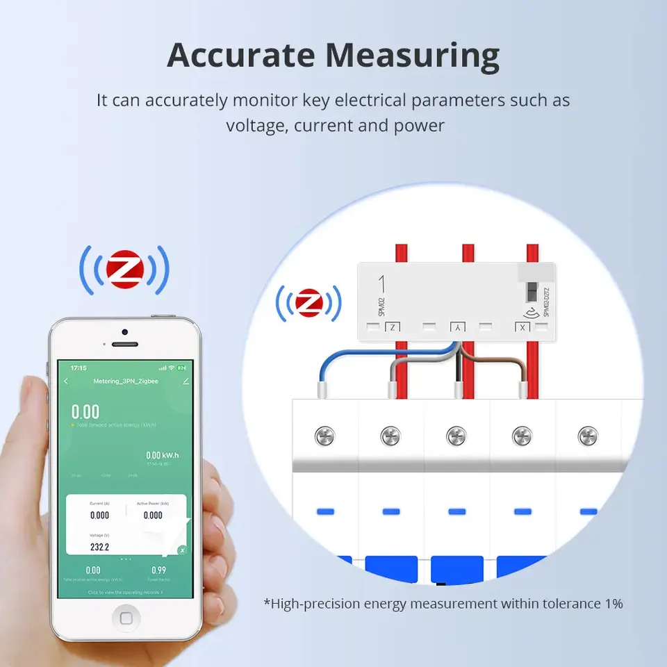 Medidor de Energía Inteligente Trifásico de 4 Hilos Zemismart 63A Tuya Zigbee WiFi, Sensor de Monitoreo de Energía con Alarma, 208V 415V, Control por Aplicación Smart Life