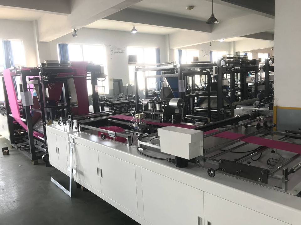 पांच कार्यों उच्च गति स्वत: बहु कार्यात्मक गैर बुने हुए कपड़े संभाल बॉक्स डी कट जूते बनियान टी शर्ट बैग बनाने मशीन