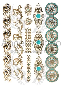 Fashionable Woman Jewelry Artemis - Flash Metallic Temporary Tattoo - Gold / Silver / Turqoise Color