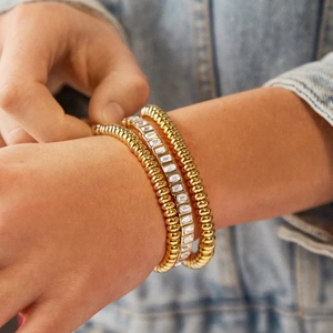 In B2C scenarios, consumers value comfort, skin compatibility, and visual consistency. Stretch-style bracelets made with elastic cord must be handled carefully during wear to avoid snapping. Users should roll the bracelet over the hand rather than pulling it wide open. For adjustable rope or sliding knot styles, periodic tightening ensures fit retention. Gold-plated pieces require protection from moisture and chemicals found in lotions, perfumes, or chlorinated water, which can cause tarnishing or flaking over time.