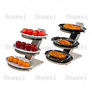 In B2B environments such as hotels and catering companies, stainless steel multi-tier stands (e.g., from Guangdong Shunli or Zhaoqing Huadison) are deployed during peak service hours. These units withstand repeated thermal cycling when used with chafing dishes and remain stable under heavy loads. Their smooth surfaces resist bacterial growth, meeting health code requirements. Mobile variants with locking wheels allow dynamic buffet line adjustments during events.