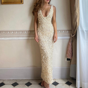 🧵 Main Categories: Satin backless, chiffon jacquard, 3D floral, hollow-out maxi dresses
