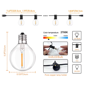 | Iled Lighting | G40 Globe Strings, Solar Festoons | Shatterproof plastic/glass, IP44, E12/E26 bases | Patio, wedding, rooftop cafe | 15–25 days | 50 pcs | $2.50–$6.80 |