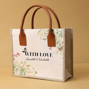 Main Categories: Recycled jute, leather-handle luxury totes, wedding gift bags