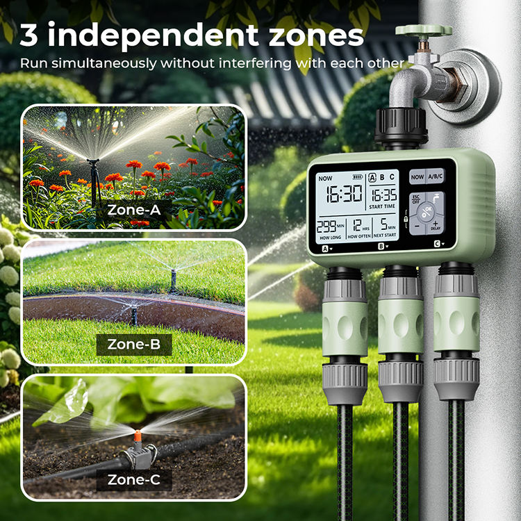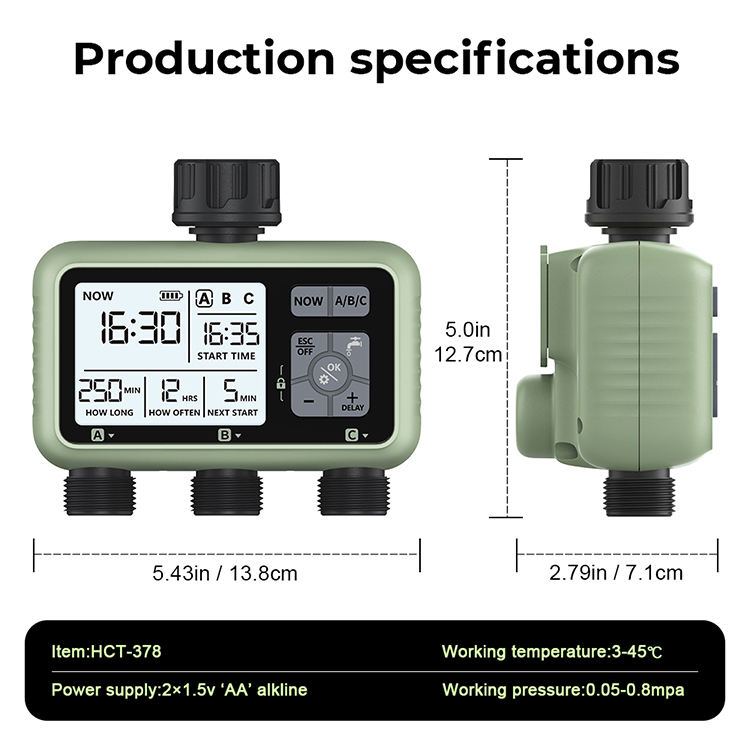 New Design Electronic Automatic Three Zone Watering System Irrigation Garden Water Timer HCT-378