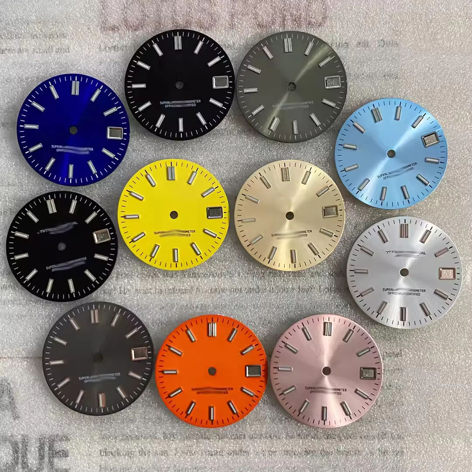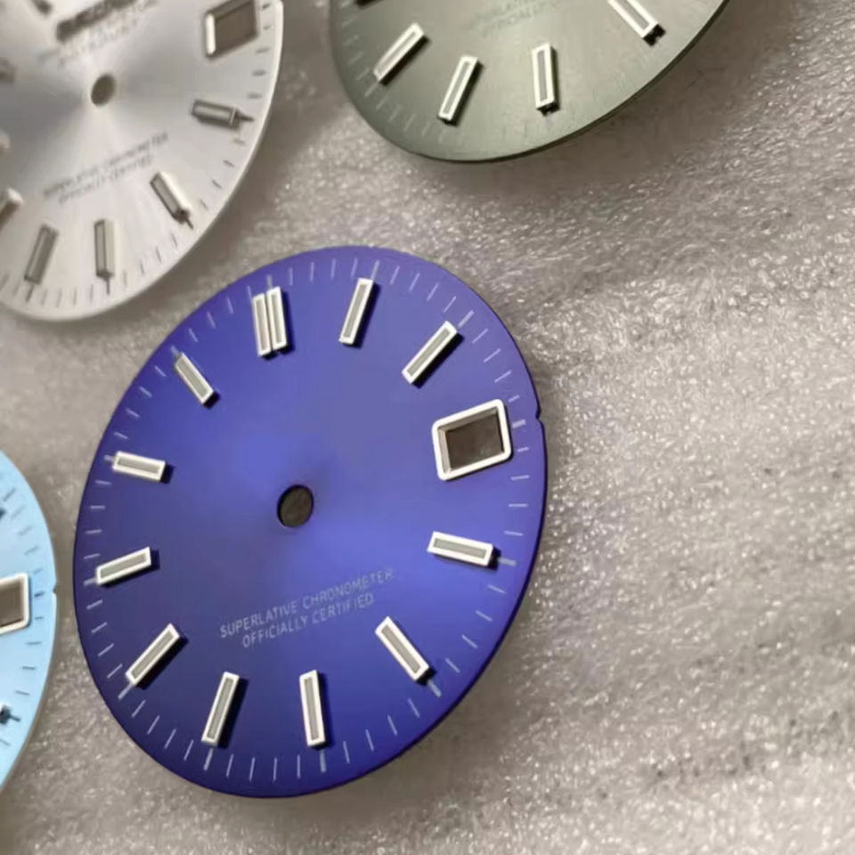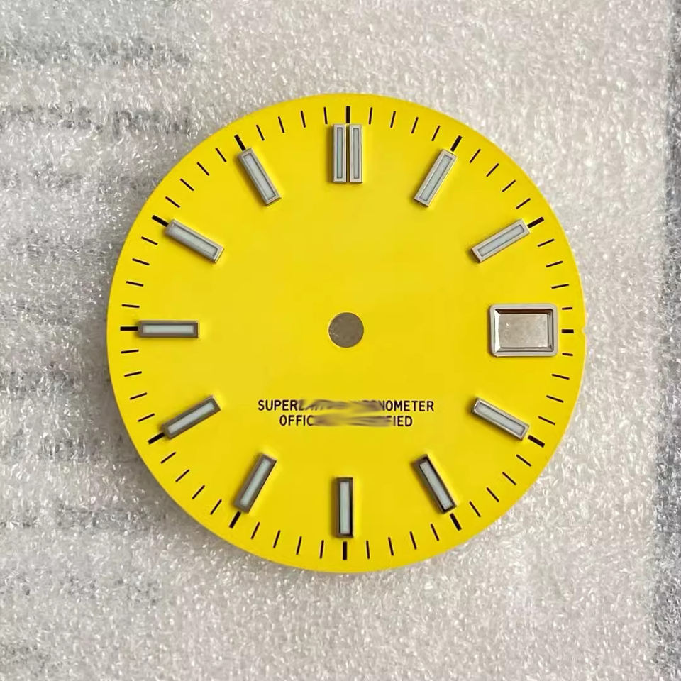 Esfera de reloj Sunburst de 28,5 MM para accesorios de movimiento NH35/NH36, piezas de reloj para reloj de pulsera con luz verde